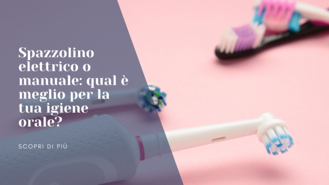 Una delle domande che ci viene posta più spesso in studio è:👉 “È meglio lo spazzolino elettrico o quello manuale?” La verità è che non esiste una risposta valida per tutti, perché la scelta dipende dalle abitudini, dalle esigenze personali e dallo stato di salute della bocca. In questo articolo analizziamo le differenze, i vantaggi…
