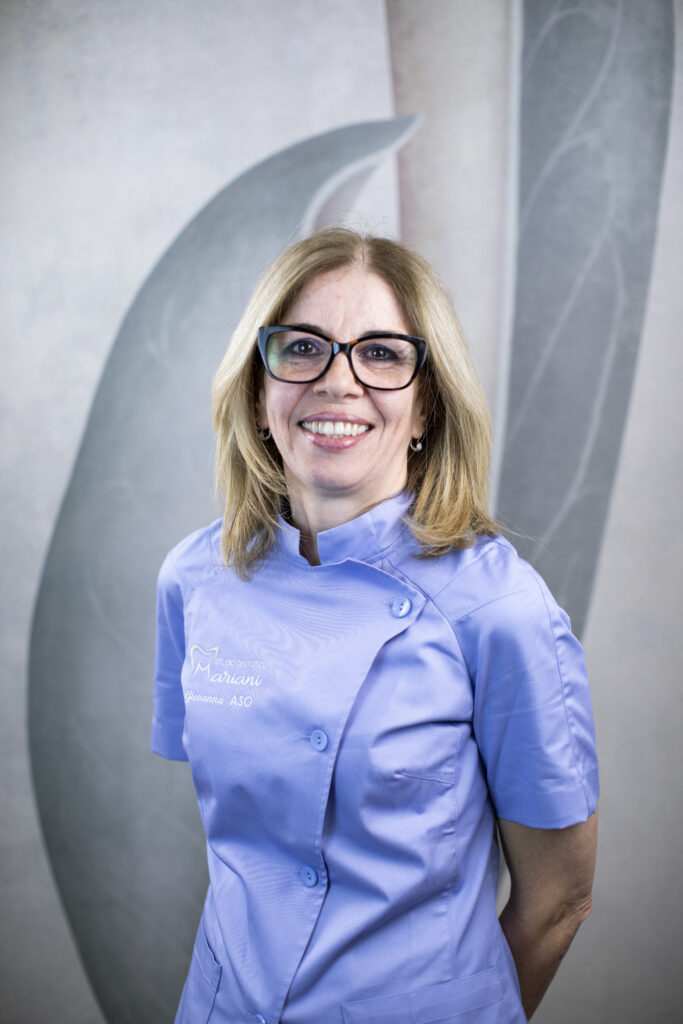 Giovanna Camaioni è una presenza vivace e accogliente all’interno dello Studio Dentistico Mariani. Con ormai 10 anni di esperienza nel team, è sempre pronta a rispondere alle esigenze dei pazienti con un sorriso e una disponibilità che mettono subito a proprio agio. La sua attenzione ai dettagli, unita a una cura scrupolosa nella sterilizzazione degli strumenti e nell’accuratezza della disinfezione degli ambienti, rende ogni visita più serena e sicura.